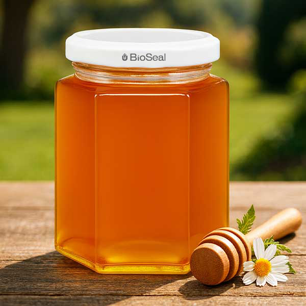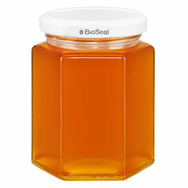 196ml Verre hexagonal avec couvercle BioSeal blanc UNiTWIST