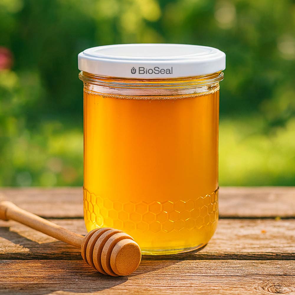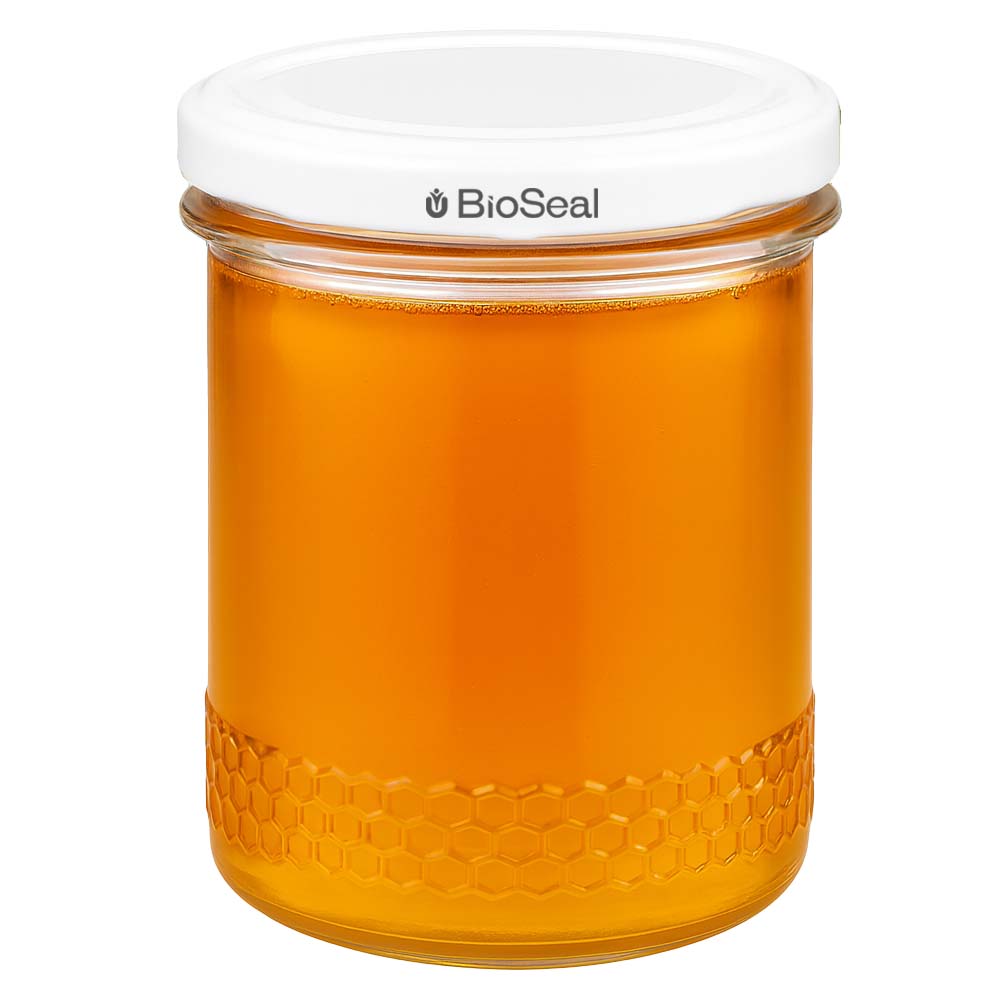 Pot à miel 560 g avec couvercle blanc BioSeal UNiTWIST